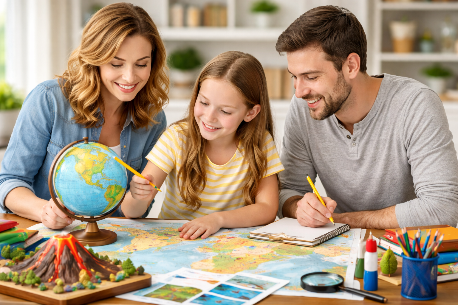 Families are encouraged to continue learning at home through various activities such as cooking a meal from another culture, exploring maps and globes together, reading multicultural books, attending community cultural events, and discussing family heritage and traditions. These home extension activities reinforce what students learn in the classroom and deepen their understanding of the world.